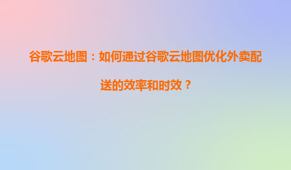 2025-04-12外卖配送行业的效率挑战与谷歌云地图的解决方案 在即时配送需求激增的今天,外卖平台面临订单分配效率低、路线规划不合理、交通拥堵应对滞后等痛点。谷歌云地图(GoogleMapsPlatform)凭借其强大的地理空间数...