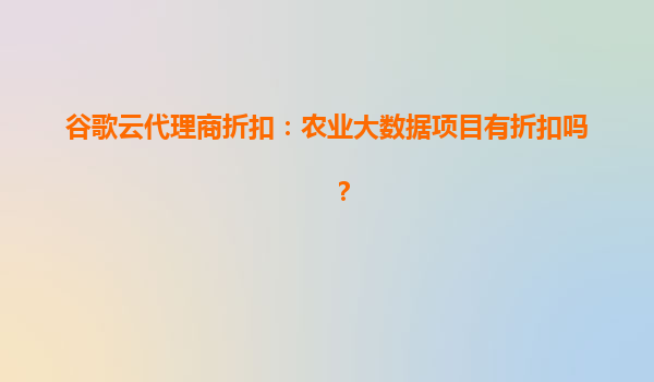 2025-04-11谷歌云代理商折扣:农业大数据项目的机遇与优势 在数字化转型浪潮中,农业领域正通过大数据技术实现效率革新。针对农业大数据项目,谷歌云代理商可为符合条件的客户提供专属折扣政策,结合谷歌云的...