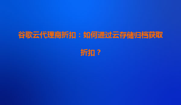 2025-04-11谷歌云代理商折扣:如何通过云存储归档获取折扣? 随着企业数据量的快速增长,如何高效且低成本地存储和管理数据成为关键问题。谷歌云(GoogleCloud)凭借其全球领先的技术和服...