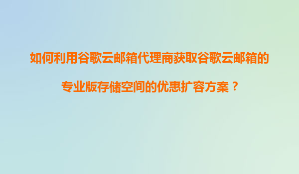 2025-11-06如何利用谷歌云邮箱代理商获取谷歌云邮箱专业版存储空间的优惠扩容方案 一、谷歌云邮箱专业版的优势 谷歌云邮箱(GoogleWorkspace,原GSuite)是全球领先的企业级电子邮件和协作工具,其专业版为用户提供...