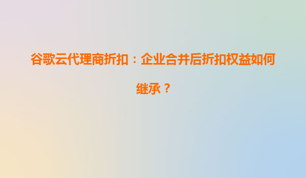 谷歌云代理商折扣:企业合并后折扣权益如何继承? 一、企业合并对谷歌云折扣权益的影响 1.1合并场景下的常见问题 企业并购或重组时,原有谷歌云账户的代理商折扣权益可能面临以下挑战: ...