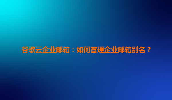 2025-04-09谷歌云企业邮箱:如何管理企业邮箱别名? 在数字化办公场景中,企业邮箱别名(EmailAlias)是提升管理效率和灵活性的重要工具。谷歌云企业邮箱(GoogleWorkspace)通过其强大的...