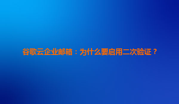 2025-04-08谷歌云企业邮箱:二次验证的必要性与核心价值 在数字化办公时代,企业邮箱承载着核心业务沟通与数据流转的职责。谷歌云企业邮箱(GoogleWorkspace)作为全球领先的云端协作平台,不仅提供高效的邮件服务,...