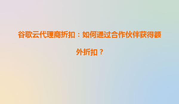 2025-04-05谷歌云代理商折扣:如何通过合作伙伴获得额外折扣? 一、谷歌云的核心优势 谷歌云(GoogleCloud)作为全球领先的云服务提供商,凭借其强大的技术能力和生态系统,为企业提供了以下...