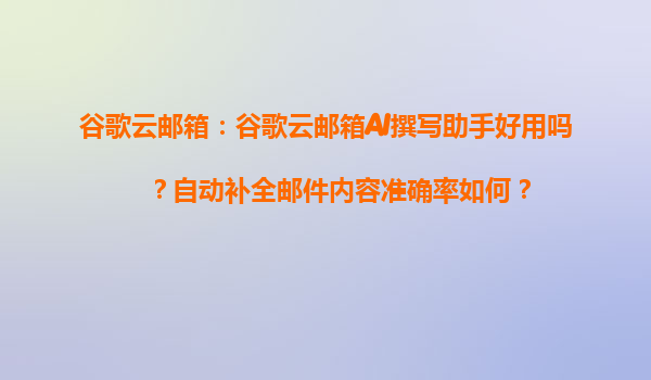 2025-04-04谷歌云邮箱AI撰写助手:智能办公的未来与代理商的协同优势 一、谷歌云邮箱AI撰写助手的核心功能 谷歌云邮箱(GoogleWorkspace)的AI撰写助手基于自然语言处理(NLP)技术,能够通过分析邮件上下文、用...