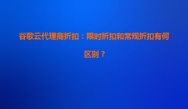 2025-04-04谷歌云代理商折扣解析:限时与常规折扣的区别 限时折扣与常规折扣的核心差异 谷歌云代理商提供的折扣主要分为限时折扣和常规折扣两类。限时折扣通常针对特定时间段或活动推出...