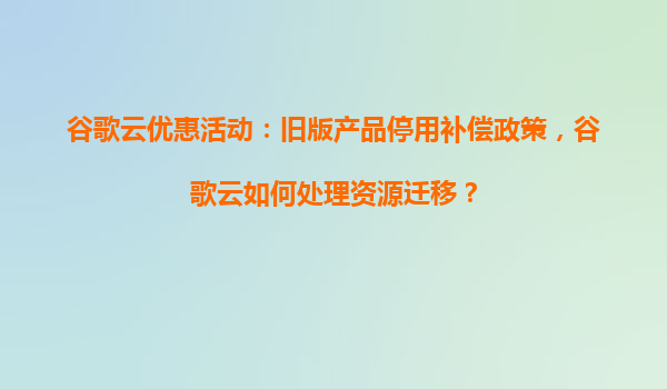 2025-04-04谷歌云优惠活动:旧版产品停用补偿政策与资源迁移指南 一、旧版产品停用补偿政策解读 随着云计算技术的快速发展,谷歌云近期宣布逐步停用部分旧版服务,并推出专项补偿政策,为用户提供平滑过...
