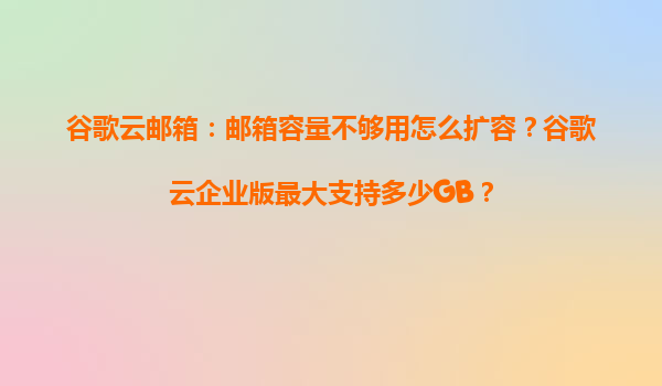 2025-04-04谷歌云邮箱容量扩容指南与企业版存储容量解析 一、谷歌云邮箱的核心优势 谷歌云邮箱(GmailwithGoogleWorkspace)作为全球领先的企业级邮箱服务,在存储管理与协作场景中展现以下核心优势: ...