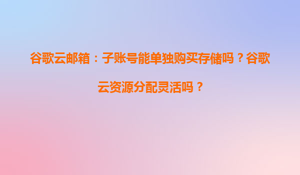 谷歌云邮箱子账号存储与资源分配解析 一、谷歌云邮箱子账号能否单独购买存储? 1.1子账号存储分配机制 谷歌云邮箱(GoogleWorkspace)采用集中式存储池管理,企业主账号可灵活分配存储...