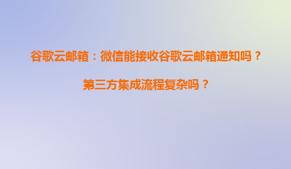 2025-04-03谷歌云邮箱与微信通知接收的可行性分析 谷歌云邮箱(GoogleWorkspace)作为全球领先的企业级邮件服务,其高效稳定的通知系统一直是企业用户的核心需求之一。尽管微信本身并未与谷歌云邮箱直接集成,但通过灵活...