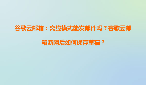 2025-04-03谷歌云邮箱离线模式的功能与优势 谷歌云邮箱(Gmail)作为全球领先的电子邮件服务之一,其离线模式的设计充分体现了谷歌云技术的强大支持。在离线模式下,用户即使没有网络连接,仍可访问已缓存的邮件内容...