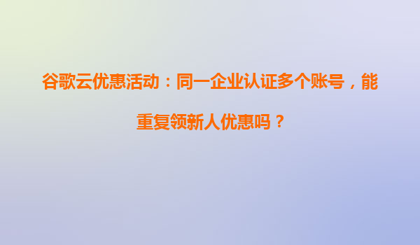 谷歌云优惠活动解析:企业认证多账号能否重复领取新人优惠? 一、谷歌云新人优惠活动规则解读 谷歌云为吸引新用户推出的"新人优惠"(如300美元免费试用额度)明确规定,每个用户或企业主体仅...
