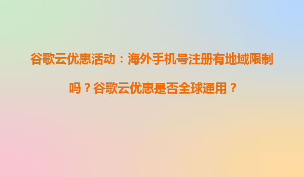 谷歌云优惠活动与全球适用性解析 谷歌云优惠活动的核心吸引力 谷歌云(GoogleCloud)近年来通过多样化的优惠策略吸引全球开发者与企业用户,包括新用户免费试用额度、特定...