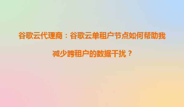 2025-09-16谷歌云代理商:谷歌云单租户节点如何帮助我减少跨租户的数据干扰? 前言:多租户环境的潜在挑战 在传统的云计算环境中,多租户共享物理资源的架构虽然能降低成本,但也可能带来数据安全性和性能干扰的风险。谷...