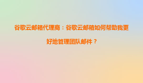 2025-09-16谷歌云邮箱代理商:谷歌云邮箱如何帮助我更好地管理团队邮件? 一、谷歌云邮箱的团队协作优势 作为全球领先的企业级邮箱服务,谷歌云邮箱(GoogleWorkspace)通过无缝集成的协作工具和智能...