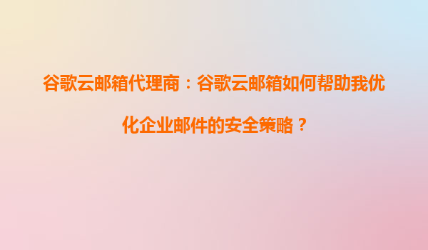 2025-09-16谷歌云邮箱代理商:谷歌云邮箱如何帮助优化企业邮件安全策略 引言 在数字化转型的浪潮中,企业邮件系统不仅是沟通的桥梁,更是安全威胁的高风险入口。钓鱼邮件、数据泄露和内部误操...