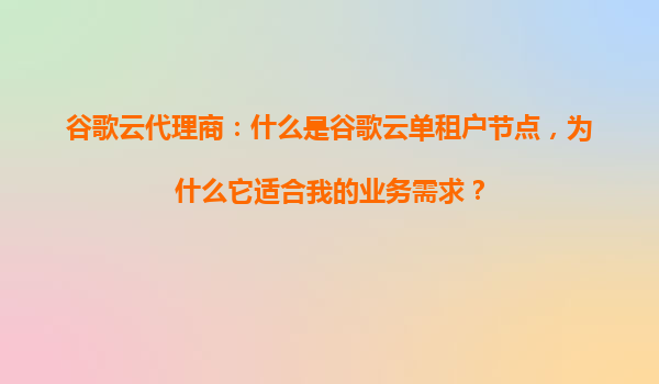 2025-09-16谷歌云代理商:什么是谷歌云单租户节点,为什么它适合我的业务需求? 引言 在云计算领域,数据安全和资源隔离一直备受企业关注。尤其是那些对合规性要求高、性...