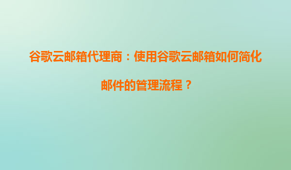 2025-09-16谷歌云邮箱代理商:如何利用谷歌云邮箱简化邮件管理流程 智能分类与标签系统 谷歌云邮箱的智能分类功能自动将收件箱邮件分为"主要""社交""推广"三大类,帮助用户快速区分优先级。配合自定...