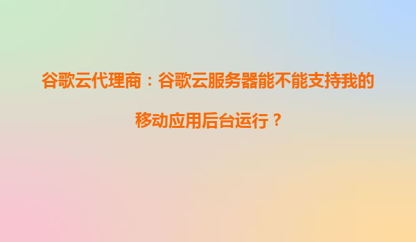 2025-09-16谷歌云代理商:谷歌云服务器能不能支持我的移动应用后台运行? 谷歌云服务器的核心优势 谷歌云(GoogleCloudPlatform,GCP)作为全球领先的云计算服务提供商,凭借其强大的基础设施、...
