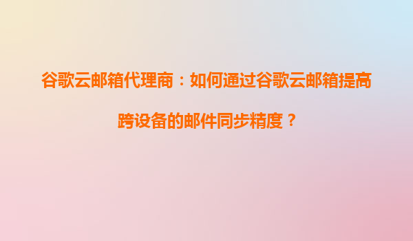 2025-09-16谷歌云邮箱代理商:如何通过谷歌云邮箱提高跨设备的邮件同步精度? 引言 在当今快节奏的数字时代,电子邮件已成为个人和企业沟通的核心工具。随着多设备使用成为常态,确保邮件在不同设...