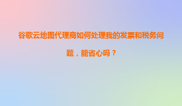 2025-11-06谷歌云地图代理商如何处理我的发票和税务问题,能省心吗? 一、谷歌云地图代理商的核心服务优势 谷歌云作为全球领先的云服务提供商,其地图API(如GoogleMaps...