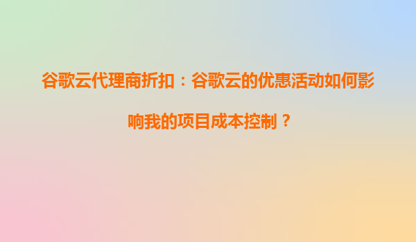 2025-09-16谷歌云代理商折扣:谷歌云的优惠活动如何影响我的项目成本控制? 一、谷歌云的优势概述 谷歌云(GoogleCloudPlatform,GCP)作为全球领先的云计算服务提供商,凭借其强大的基础设施、先进...