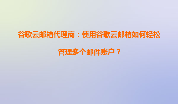 谷歌云邮箱代理商:使用谷歌云邮箱如何轻松管理多个邮件账户? 一、谷歌云邮箱的多账户管理需求 在现代商务环境中,企业和个人往往需要同时管理多个邮件账户。...