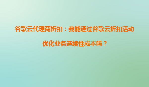 2025-09-16谷歌云代理商折扣:谷歌云活动是否支持自动化资源管理的折扣策略? 前言 在云计算服务领域,谷歌云(GoogleCloud)凭借其强大的基础设施、全球化的资源部署以及灵活的定价策略,成为了企业和开发者的重要...