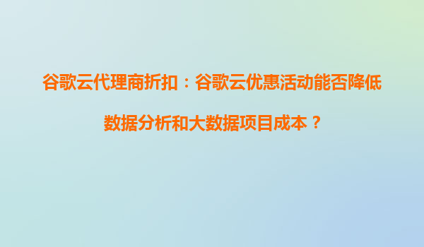 谷歌云代理商折扣:谷歌云优惠活动能否降低数据分析和大数据项目成本? 引言 在当今数据驱动的商业环境中,数据分析和大数据项目已成为企业决策和运营的核心组成部分。然而,这些项目的成本往往较高,尤其...