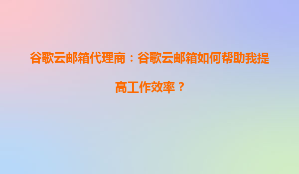 2025-09-16谷歌云邮箱代理商:谷歌云邮箱如何帮助我提高工作效率? 一、谷歌云邮箱的核心优势 谷歌云邮箱(GoogleWorkspace)作为全球领先的企业级电子邮件解决方案,以其高效、...