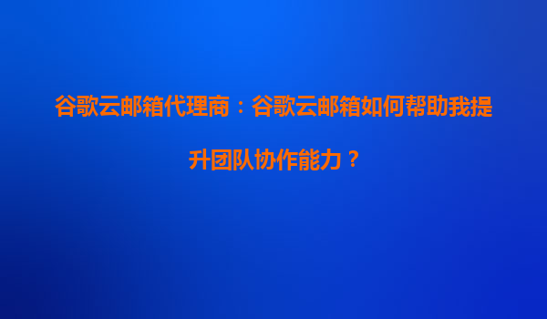 2025-09-16谷歌云邮箱代理商:谷歌云邮箱如何帮助我提升团队协作能力? 一、谷歌云邮箱的核心协作功能 谷歌云邮箱(GoogleWorkspace邮箱)作为企业级解决方案,专为优化...
