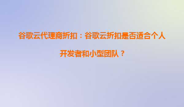 2025-09-16谷歌云代理商折扣:谷歌云折扣是否适合个人开发者和小型团队? 一、谷歌云的优势概述 谷歌云(GoogleCloudPlatform,GCP)作为全球领先的云计算服务提供商之一,凭借其强大的基础设施、灵...