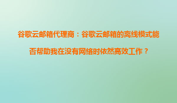 2025-09-16谷歌云邮箱代理商:谷歌云邮箱的离线模式能否帮助我在没有网络时依然高效工作? 引言:离线办公的现代需求 在当今快节奏的商业环境中,网络连接并非总是稳定或...