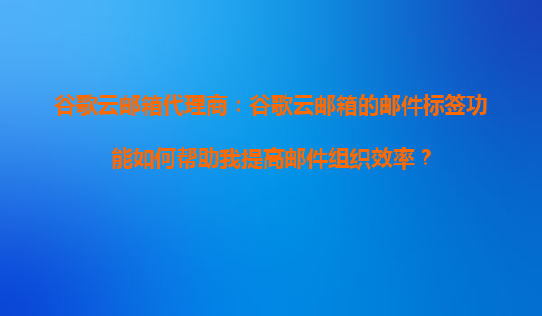 2025-09-16引言:邮件管理的现代挑战 在信息爆炸的时代,电子邮件已成为日常工作和沟通的核心工具之一。然而,随着邮件数量的激增,如何高效组织和管理邮件成为许多用户面临的难题。谷歌云邮箱(Gmail)作为...