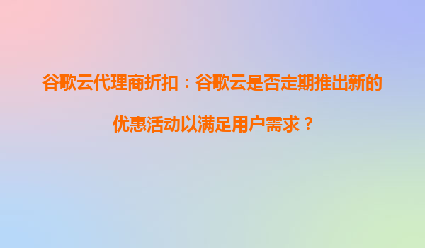 2025-09-16谷歌云代理商折扣:谷歌云是否定期推出新的优惠活动以满足用户需求? 在当今数字化快速发展的时代,云计算已成为企业提升效率、降低成本的重要工具。作为全球领先的云服务提供商之一,谷歌云(GoogleCloud)...