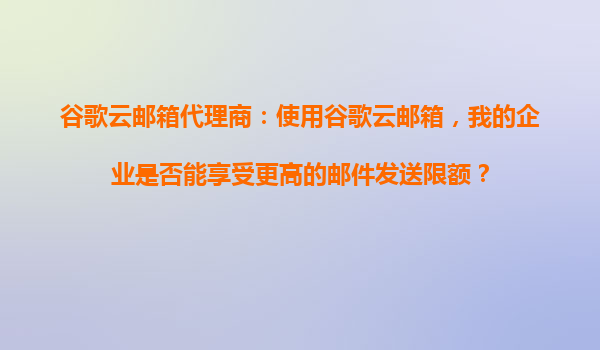 2025-09-16谷歌云邮箱代理商:使用谷歌云邮箱,我的企业是否能享受更高的邮件发送限额? 前言 在数字化时代,电子邮件仍然是企业与客户沟通的重要工具。对于企业来说,高效的邮件...