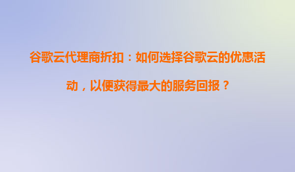 2025-09-16谷歌云代理商折扣:如何选择谷歌云的优惠活动,以便获得最大的服务回报? 1.谷歌云的核心优势概览 在选择谷歌云(GoogleCloud)的优惠活动前,了解其核心优势是至关重要的。谷歌云作为全球领先的云计算...