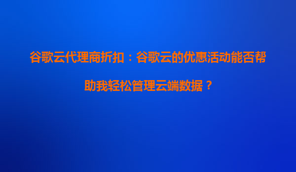 2025-09-16谷歌云代理商折扣:谷歌云的优惠活动能否帮助我轻松管理云端数据? 一、谷歌云的核心优势 谷歌云(GoogleCloudPlatform,GCP)作为全球领先的云计算服务提供商,凭借其强大的基础设施和创新的技术能力,...