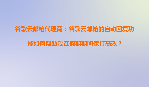 2025-09-16谷歌云邮箱代理商:谷歌云邮箱的自动回复功能如何帮助我在假期期间保持高效? 一、谷歌云邮箱的优势概述 谷歌云邮箱(GmailforBusiness)作为企业级电子邮件...