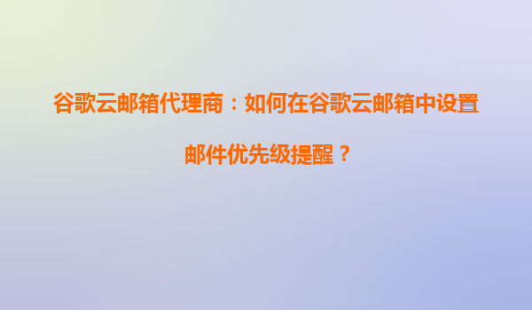2025-09-16谷歌云邮箱代理商指南:优化邮件管理的优先级提醒设置 作为高效的邮件管理工具,谷歌云邮箱(Gmail)通过智能功能和云端协同能力,帮助用户精准处理重要邮件。本文将从代理商角度出发,详解如何利用谷歌云邮箱的优...