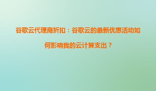 2025-09-16谷歌云代理商折扣:谷歌云的最新优惠活动如何影响我的云计算支出? 一、谷歌云的核心优势与市场竞争 谷歌云(GoogleCloud)作为全球三大公有云服务商之一,凭借其技术...