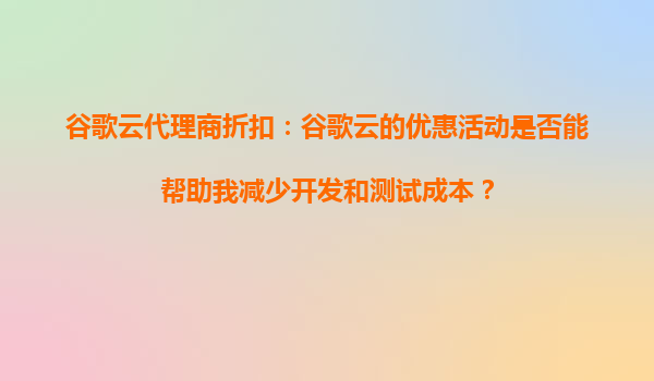 2025-09-16谷歌云代理商折扣:谷歌云的优惠活动是否能帮助您减少开发和测试成本? 引言 在当今快速发展的技术领域中,云计算已成为企业开发、测试和部署应用的核心基础设施。谷歌云(GoogleCloud)作为全球...