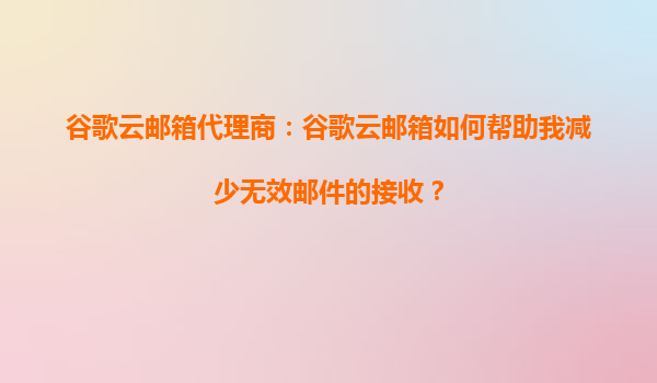 2025-09-16谷歌云邮箱代理商:谷歌云邮箱如何帮助我减少无效邮件的接收? 在当今数字化办公环境中,电子邮件已成为企业沟通的主要工具之一。然而,无效邮件(如垃圾邮件、广告邮件或钓鱼邮件)的泛滥不仅降低了...