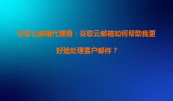 2025-09-16谷歌云邮箱代理商:如何通过谷歌云邮箱提高公司邮件的处理速度? 引言 在当今快节奏的商业环境中,高效的邮件处理能力是企业沟通和运营的关键。谷歌云邮箱(Gma...