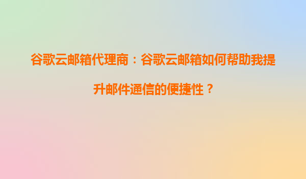 2025-09-06谷歌云邮箱代理商:谷歌云邮箱如何帮助我提升邮件通信的便捷性? 一、引言:为什么选择谷歌云邮箱? 在当今数字化时代,高效的邮件通信是企业和个人工作流程中不可或缺的一部分。谷歌云邮箱(GoogleWorksp...