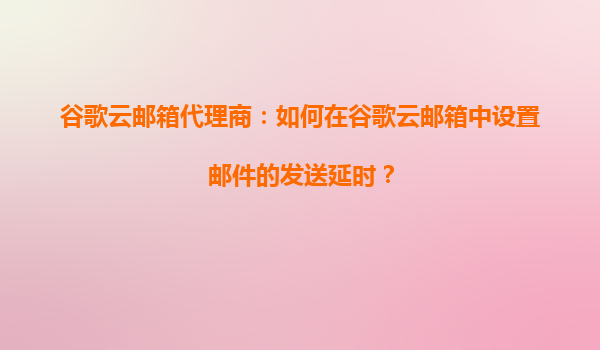 谷歌云邮箱代理商:如何在谷歌云邮箱中设置邮件的发送延时? 引言 在当今快节奏的商业环境中,邮件通信的时效性至关重要。然而,某些情况下,您可能需要延迟发送邮件,以确保邮件在最佳时间送达收...