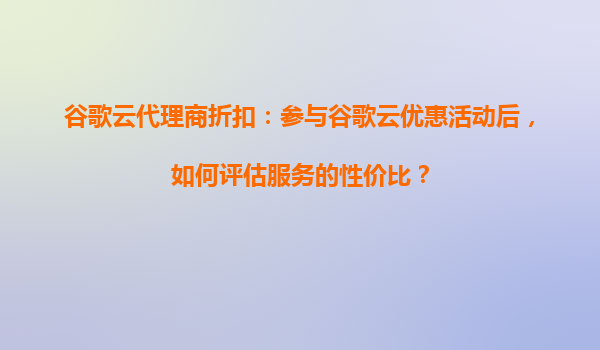 2025-09-06谷歌云代理商折扣:参与谷歌云优惠活动后,如何评估服务的性价比? 一、为何选择谷歌云?其核心优势分析 谷歌云(GoogleCloud)作为全球领先的云计算服务提供商,凭借其技术实力和全球...
