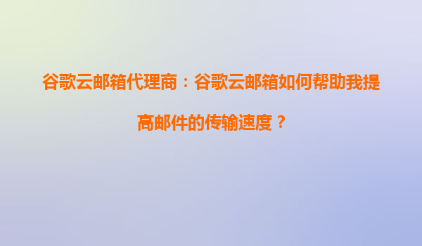 2025-09-05谷歌云邮箱代理商:谷歌云邮箱如何帮助我提高邮件的传输速度? 一、引言 在当今快节奏的商业环境中,电子邮件是企业和个人日常沟通不可或缺的工具。邮件的传输速度直接影响着工作效率和客户满意度。如果您正在...