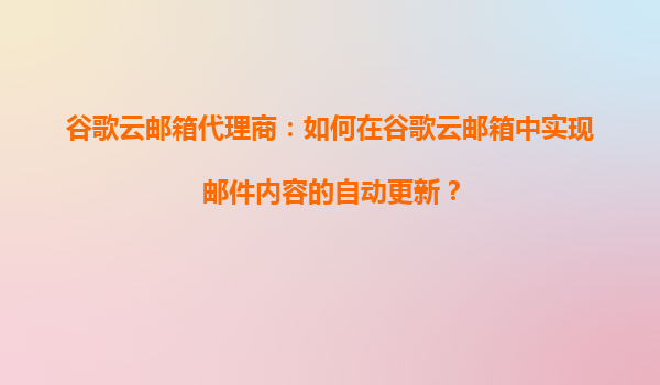 2025-09-05谷歌云邮箱代理商:实现邮件内容自动更新的高效解决方案 为什么选择谷歌云邮箱? 谷歌云邮箱(GoogleWorkspace)以其强大的云端基础设施和全球化网络为后盾,为企业提供了安全、...