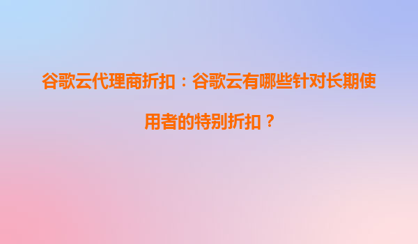 2025-09-04谷歌云代理商折扣:谷歌云有哪些针对长期使用者的特别折扣? 引言 在云计算市场竞争日益激烈的今天,谷歌云(GoogleCloudPlatform,GCP)凭借其强大的基础设施和创新的技术解决方案吸引了...